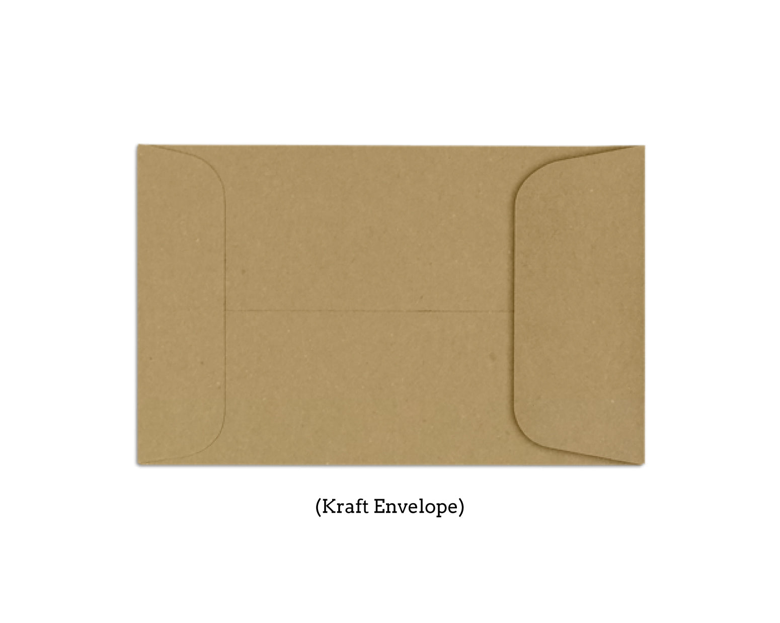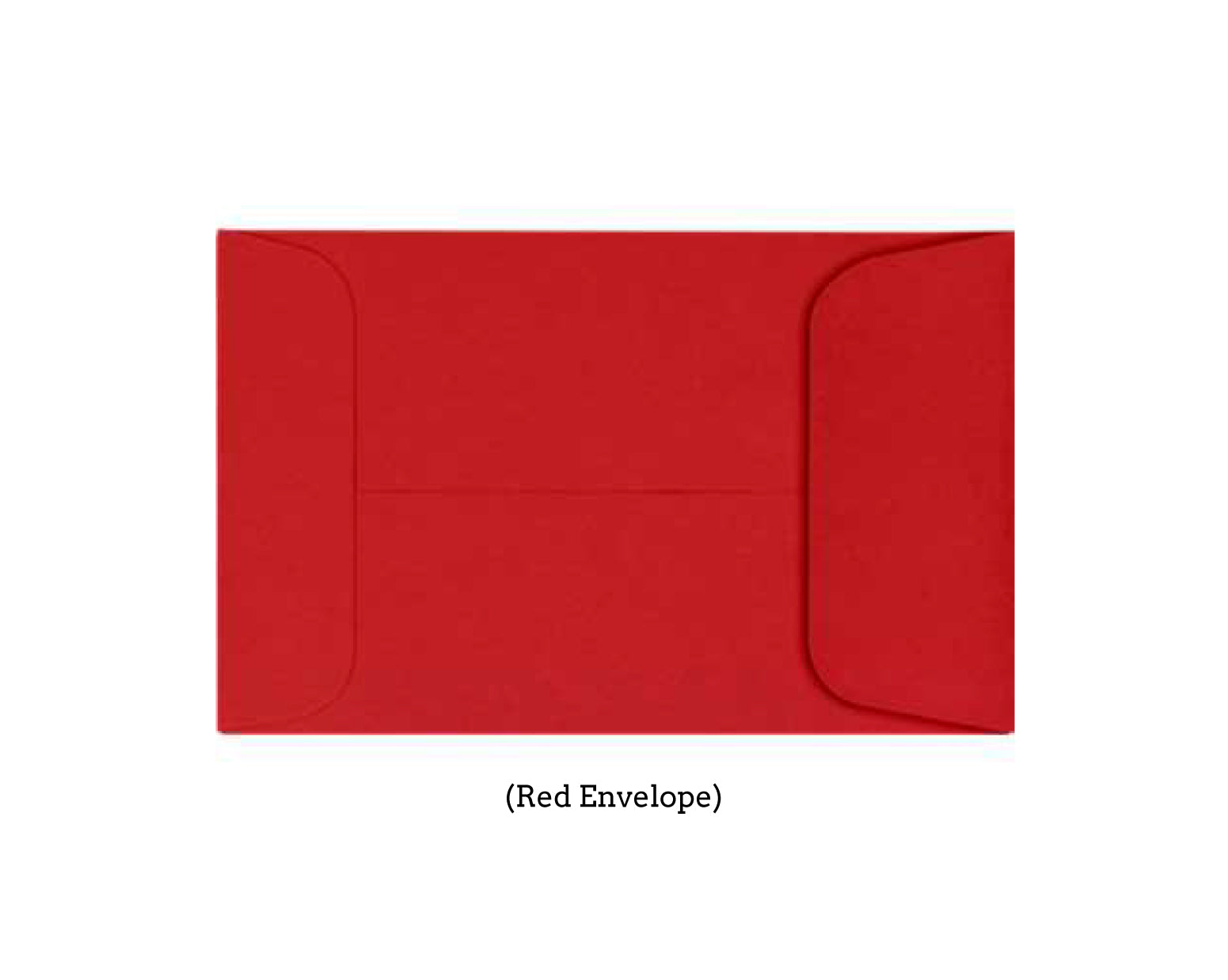 Printed on heavy paper stock. Includes envelopes with a choice of red or Kraft.